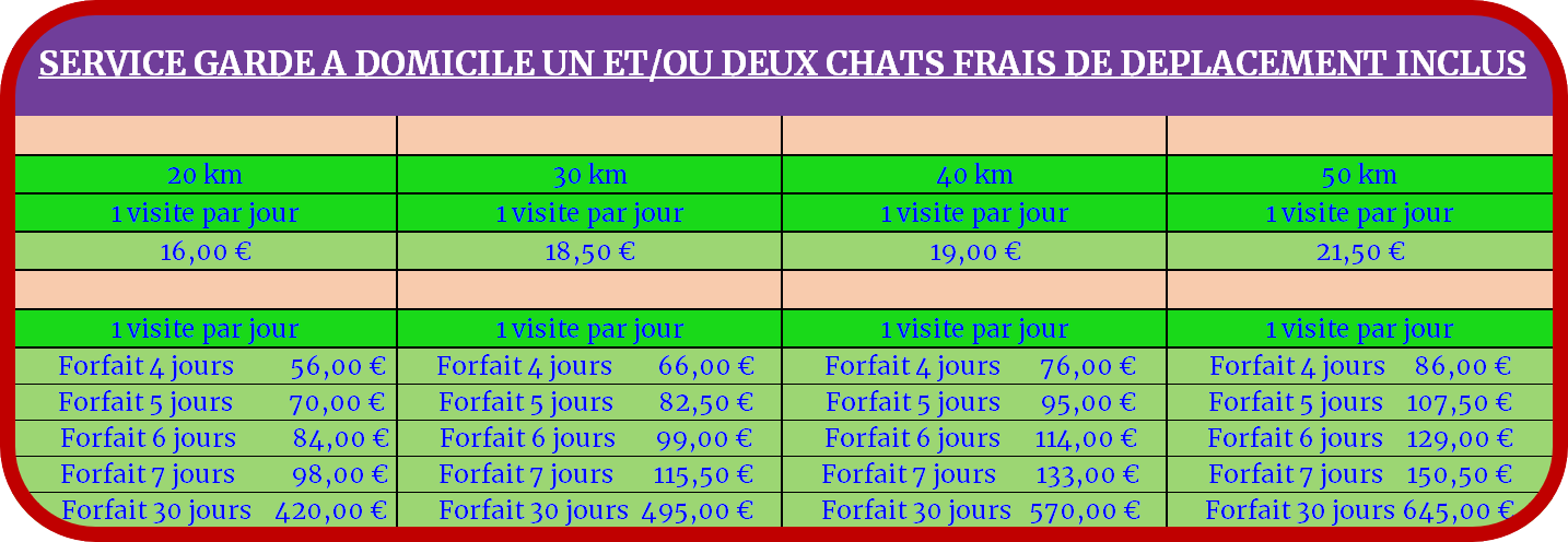 TARIFS GARDE CHATS ET CHIENS