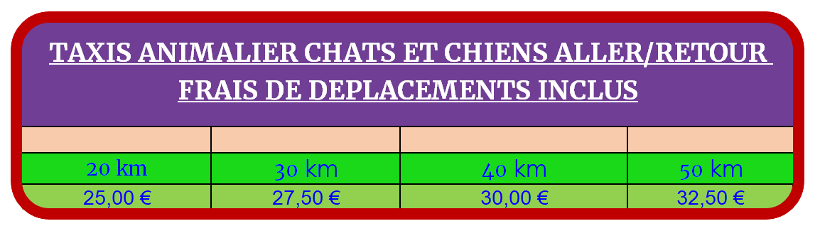 TARIFS TAXI ANIMALIER CHATS ET CHIENS